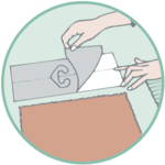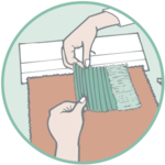 1. Fold-over the header at the notch and release the backing-paper along the cardboard edge. The adhesive appears.